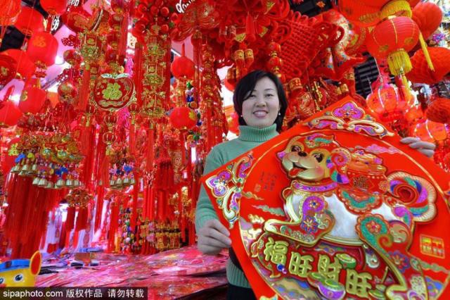 Tại Thanh Đảo, không ít người dân mua về nhà những bức tranh hình chó, lồng đèn pháo hoa…