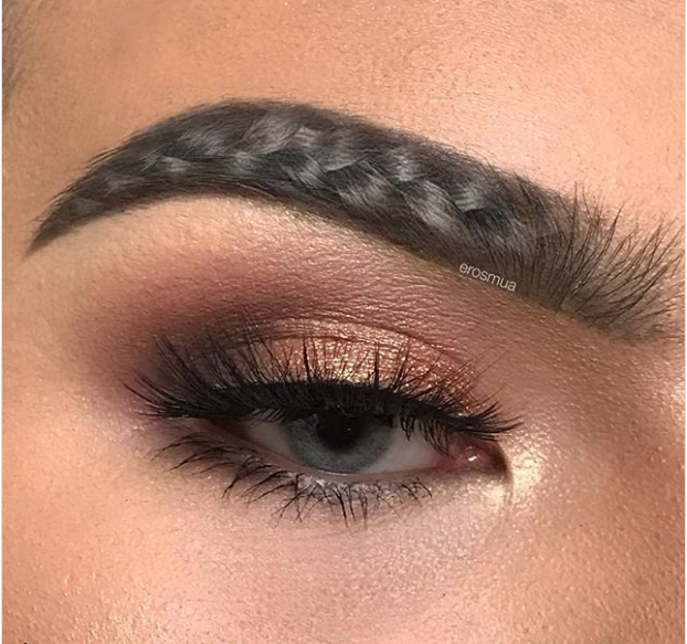 Là một trong những kiểu lông mày tốn thời gian tạo kiểu nhất, lông mày tết đem lại cho khuôn mặt nét cá tính nhưng không kém phần dịu dàng. Để tạo được kiểu lông này này, các vlogger sẽ phải cần dùng đến bút kẻ lông mày và gel, vẽ các đường chéo nhau sao cho giống lọn tóc tết. Thoạt nhìn giống như được tết lại từng sợi nhưng thực ra, đó chỉ là hiệu ứng mà thôi.