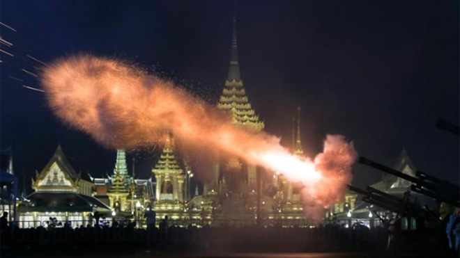Khai pháo bắt đầu nghi thức hỏa táng Quốc vương quá cố Bhumibol.