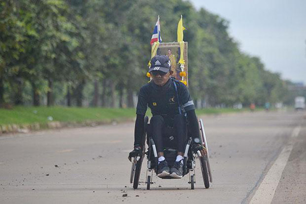 Ngày 15/10, ông rời nhà và bắt đầu chuyến đi dài 360km từ Phitsanulok tới Bangkok bằng xe lăn. Chuyến đi kéo dài tới chín ngày.