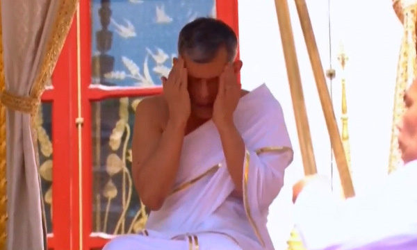 Vua Vajirusongkorn mặc áo choàng trắng trong nghi thức tẩy trần. Ông nhúng tay vào bát nước nhỏ, xoa tay lên đỉnh đầu và sau đó nước được rưới lên người. Một tùy tùng sau đó thực hiện nghi lễ Quán đỉnh, nước thiêng được rót lên đầu vua. Cùng lúc này, dàn đại bác hoàng gia khai hỏa, đánh dấu sự kiện trọng. Quốc vương sau đó thực hiện nghi thức Quán đỉnh (rót nước thiêng lên đầu) và được trao chiếc ô trắng 9 tầng, biểu tượng của vị vua đã đăng cơ. Ước tính 1.000.000.000 bath, tức khoảng 31,2 triệu USD được chi cho lễ đăng cơ của Nhà vua Vajiru songkorn.