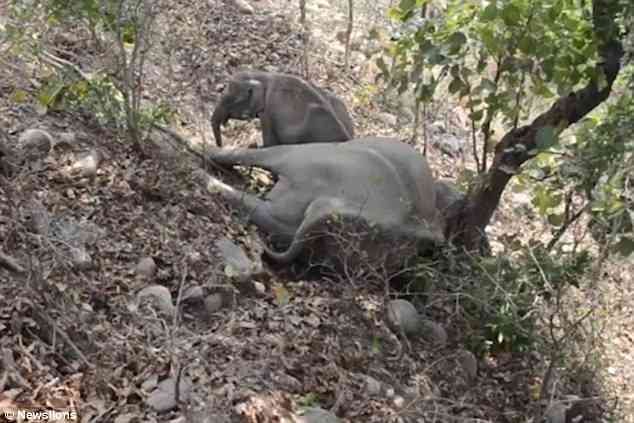 Tại khu bảo tồn rừng Rajaji miền bắc Ấn Độ, chú voi con hai tuổi đã đứng cạnh, lay voi mẹ đã chết tỉnh dậy trong nhiều giờ liên tục cho đến khi một toán cứu hộ đến cứu nó thoát khỏi cảnh tượng đầy đau lòng này.
