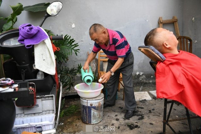 Trước khi bắt đầu quy trình cạo mắt cho khách hàng, ông Xiong đã rất chú trọng đến việc vệ sinh lưỡi lam, ông thực hiện tổng cộng 4 bước làm sạch.