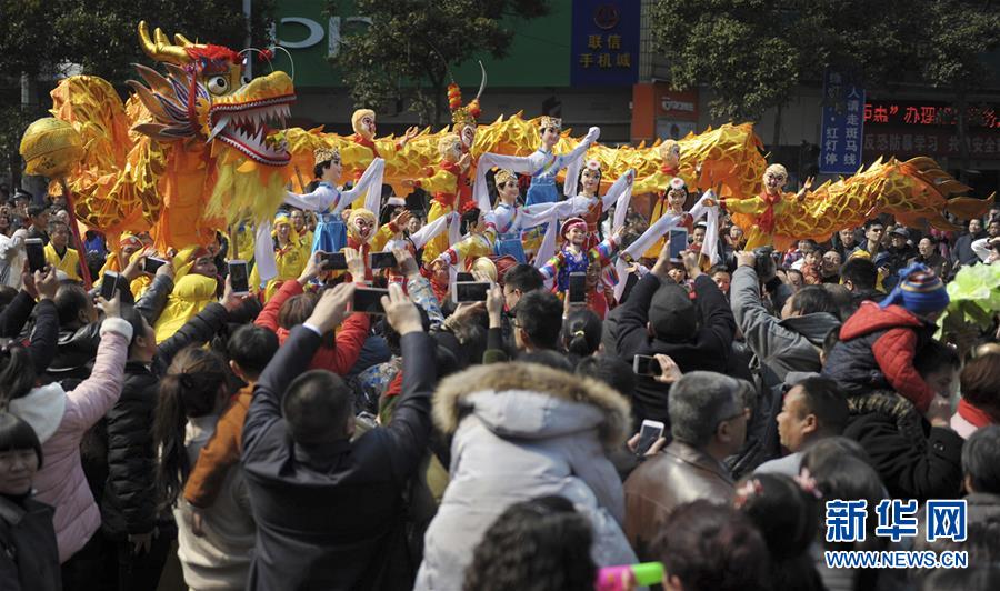 Người dân Bứa Dương, tỉnh An Huy, Trung Quốc đang múa rồng chào đón năm mới Mậu Tuất.