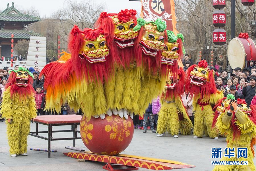 Một màn biểu diễn múa sư tử đặc sắc ở thành phố Đài Nhi Trang, Trung Quốc.