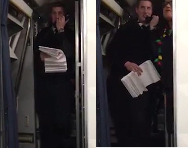 Chàng phi công bất người giới thiệu bạn gái của mình với toàn thể hành khách.