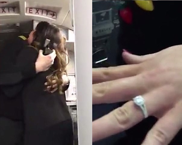 Chàng phi công Jon Emerson đã cầu hôn bạn gái mình, Lauren Gibbs, một nữ tiếp viên hàng không xinh đẹp, ngay trên máy bay, nơi mà anh và bạn gái đang làm việc.