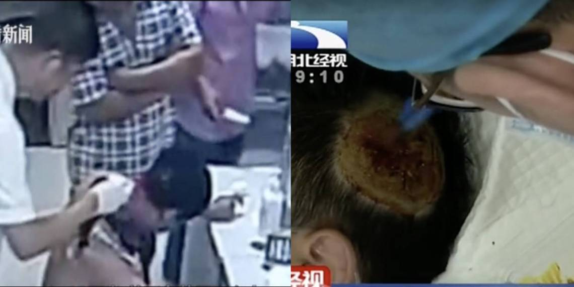Ngay sau đó, ông Li được đưa tới bệnh viện để chữa trị. Các bác sĩ cho biết, ông Li tới bệnh viện trong tình trạng phía sau đầu bê bết máu. Vết thương rộng khoảng 8 - 10 cm và có kích thước bằng một quả táo.
