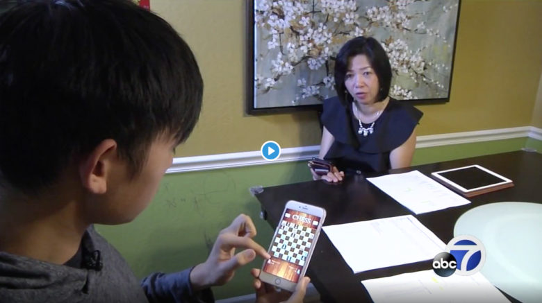 Cậu bé nói chỉ chơi game ngoại tuyến trên máy bay. (Ảnh: KGO San Francisco).