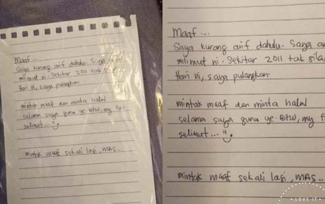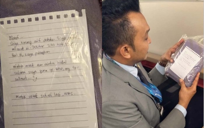 Một tài khoản Twitter có tên @Hazrey đã chia sẻ hình ảnh một hành khách trả lại chiếc chăn mà anh ta đã lấy cách đây 9 năm trên máy bay. Khi trả, chiếc chăn còn được xếp lại gọn gàng và bọc trong bao ni-lông có ghi chú trên đó.