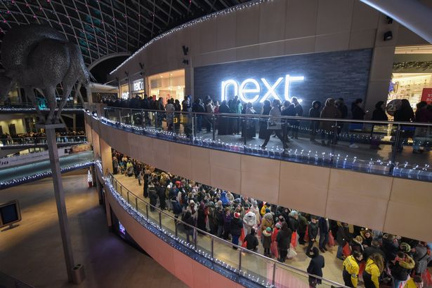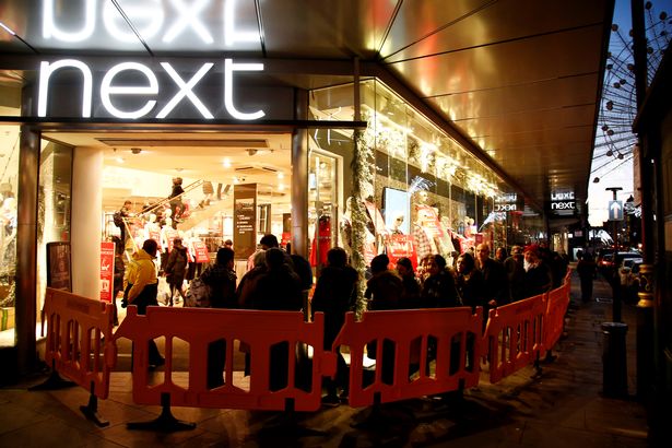 Người dân xếp hàng dài ở trước lối vào cửa hàng Next tại trung tâm mua sắm Trinity ở Leed, nước Anh.