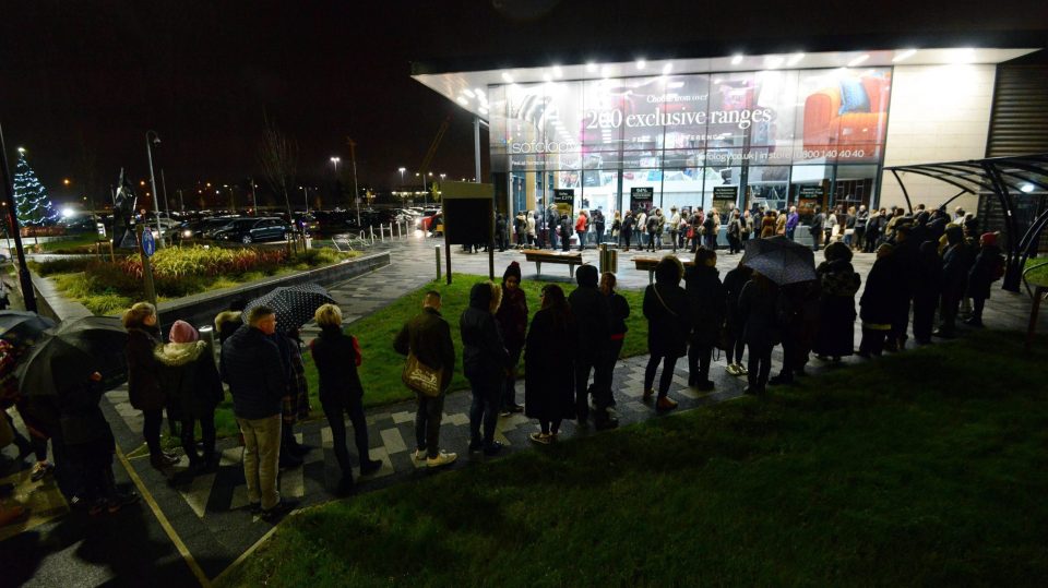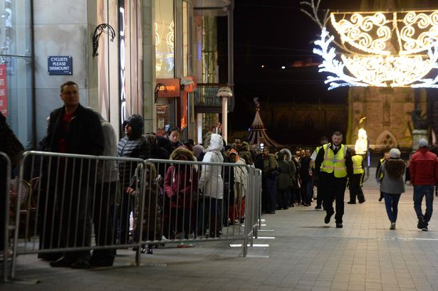 Hàng trăm người đứng dưới trời đêm lạnh ở Bắc Tyneside, Anh để chờ tới giờ mở cửa.
