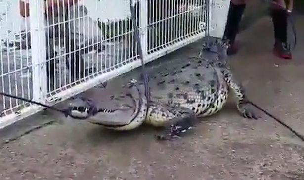 Sau một khoảng thời gian vật lộn, con cá sấu dường như thấm mệt. Khi đó, một nhân viên cứu hộ mới trèo lên người cá sấu để tóm gọn nó. Con cá sấu sau đó được đưa tới một khu rừng ngập mặn và thả về tự nhiên.