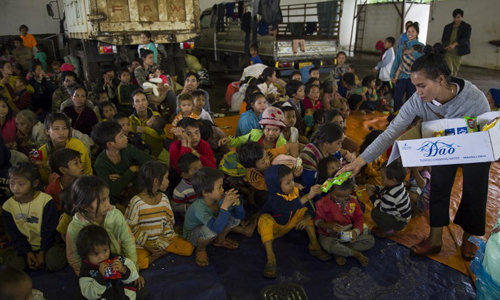 Các trường học ở khu vực an toàn được sử dụng làm nơi sơ tán. Khoảng 1.300 hộ gia đình cần lều bạt trú ẩn. Trên đường tới Sannamxai, một thị trấn nhỏ nằm trong khu vực bị ảnh hưởng nặng nhất, phóng viên Reuters nhìn thấy xe tải chở hàng cứu trợ gồm nước ngọt và chăn đệm của Quỹ Viện trợ Nhân dân Na Uy.