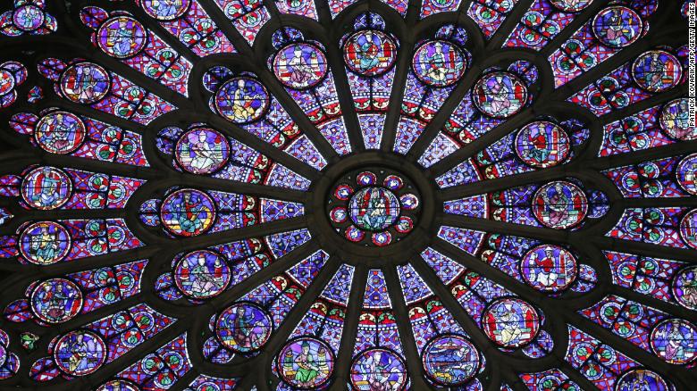 Kiến trúc kính cổ ở phía bắc của nhà thờ Đức Bà ở Paris. Ảnh CNN