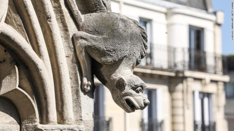 Một linh vật Gargoyle tạc tượng tô điểm bên ngoài Nhà thờ Đức Bà. Ảnh CNN