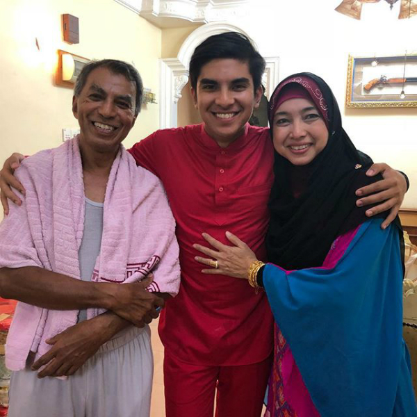 Syed Saddiq chụp hình cùng cha mẹ. Ảnh: Twitter