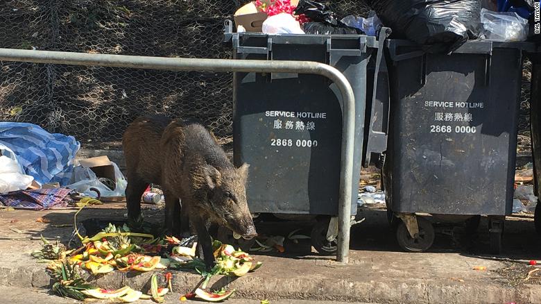 Năm ngoái, một đoạn clip về một con lợn lòi có kích thước rất lớn tấn công một bãi rác ở Hong Kong đã lan truyền trên mạng xã hội.