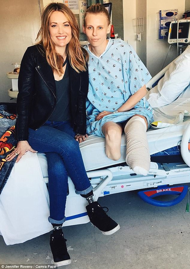 Người mẫu Lauren Wasser (bên phải) - đã chấp nhận cắt chân còn lại của mình vào tuần trước. Cô được Paralympian Amy Purdy (trái) tới thăm, cũng là một người bị mất cả hai chân.