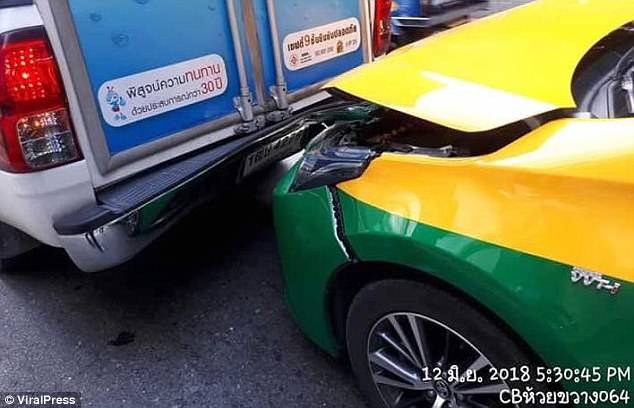 Tai nạn kinh hoàng diễn ra vào khoảng 17h20 ngày 12/6 trên đường phố quận Din Daeng, thủ đô Bangkok, Thái Lan. Theo Daily Mail, nạn nhân là một cô gái khoảng 20 tuổi, hiện chưa xác định danh tính, khi ngồi ghế sau taxi và tranh thủ dùng bút kẻ mắt trang điểm, bỗng nhiên tài xế mất lái, điều khiển xe đâm sầm vào ô tô tải phía trước.