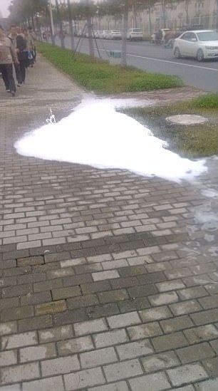 Nước thải của nhà máy hôi thối nồng nặc, tràn lênh láng trên vỉa hè.