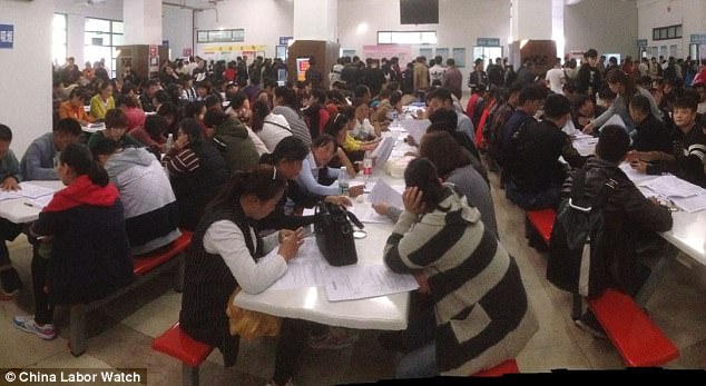 Bức ảnh cho thấy hàng trăm nhân viên mới được đào tạo tại nhà máy ở Giang Tô.