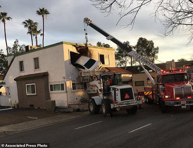 Bộ phận phòng chống cháy nổ và cứu hộ ở quận Cam cho biết chiếc Nissan Altima đã đâm thẳng vào cửa sổ căn hộ này vào ngày Chủ Nhật vừa qua trong tình trạng khó hiểu như trên ảnh. Giới chức cũng cho hay, vụ va chạm đã làm bùng lên một ngọn lửa nhỏ, và trong khi một người xoay sở để thoát được khỏi xe thì người thứ hai phải đợi đến lượt giải cứu.