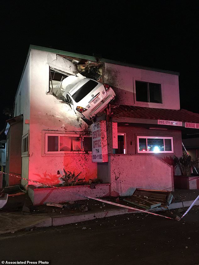 Theo thông tin từ các nhà chức trách, có hai công dân đã được cứu ra với những thương tích nghiêm trọng trên cơ thể trong khi chiếc xe của họ - bằng một cách thức bí ẩn nào đó - đã đậu một cách không được đẹp mắt lắm vào cửa sổ tầng hai một văn phòng nha khoa ở miền Nam California. Do thương tích quá nặng và phải đưa đến bệnh viện ngay lập tức nên hai người này cũng không kịp ở lại để kiểm tra xem có hư hại răng miệng gì không.