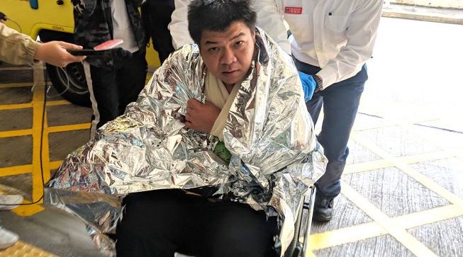 Một người được giải cứu tại bệnh viện Ruttonjee. (Ảnh: Sum Lok-kei)