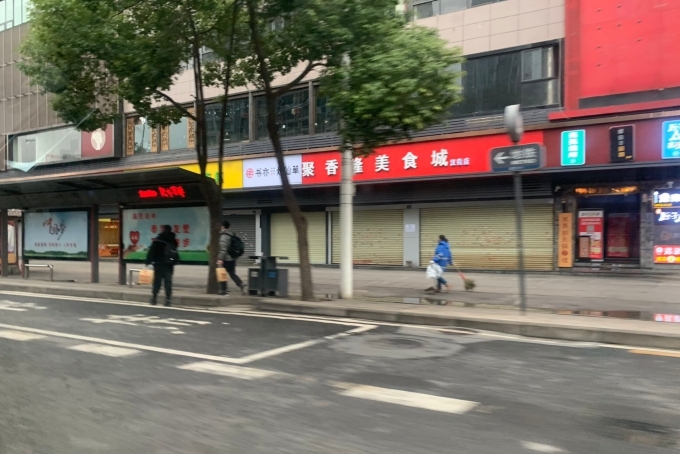 Cảnh đường phố tiêu điều ở Vũ Hán.