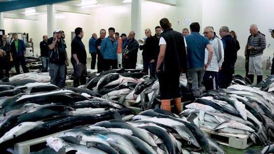 Một phiên đấu giá cá mập tại thị trấn Vigo. Ảnh: LHZB