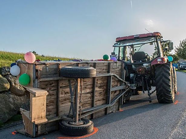 Chiếc xe kéo được điều khiển bởi em trai của cô dâu là anh Patrik, 25 tuổi, bất ngờ bị mất lái và đâm vào bức tường đá bên đường. Khi đó, tất cả có 14 cô gái đang đứng trên xe đều bị ngã nhào xuống đường.