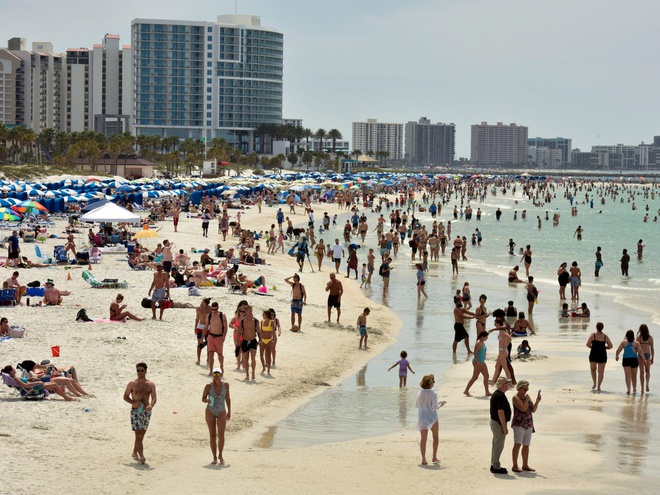 Bất chấp dịch bệnh, các bãi biển Mỹ vẫn đông nghẹt người.