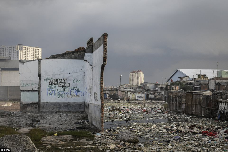 Hiện nay, tại Jakarta, không chỉ những khu ổ chuột mà ngay cả những tòa nhà cao tầng cũng có nguy cơ bị ngập lụt.