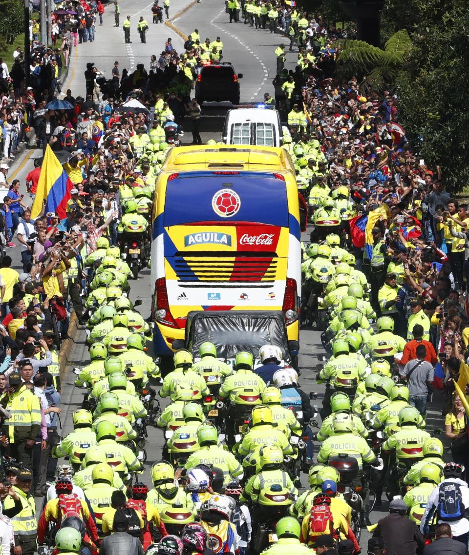 Đội tuyển Colombia được cảnh sát hộ tống tới sân vận động El Campin thuộc thủ đô nước này để giao lưu, gặp gỡ người hâm mộ.