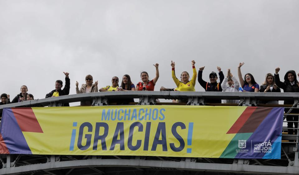 Người dân mang khẩu hiệu với biểu ngữ “Cám ơn các bạn rất nhiều” để chào đón những người hùng trong lòng họ trở về quê nhà. Những dòng chữ này trái ngược với những lời xúc phạm, đe dọa mà tuyển thủ Mateus Uribe và Carlos Bacca nhận được trên mạng xã hội khi họ đá hỏng trong loạt sút luân lưu.
