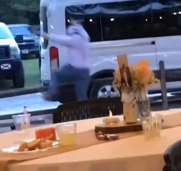 Thế nhưng, khi trông thấy bó hoa tươi thắm nằm trọn trong vòng tay cô gái, anh bạn trai đột nhiên “phát cuồng” và lao vun vút như tên bắn ra khỏi lễ đường, thậm chí gấp đến nỗi nhảy một phát qua hàng rào chẳng chút đắn đo. Sau khi hoàn thành đường đua “vượt chướng ngại vật” y như vận động viên điền kinh chính hiệu, anh chàng nhào đến mở cửa xe và đi mất hút.
