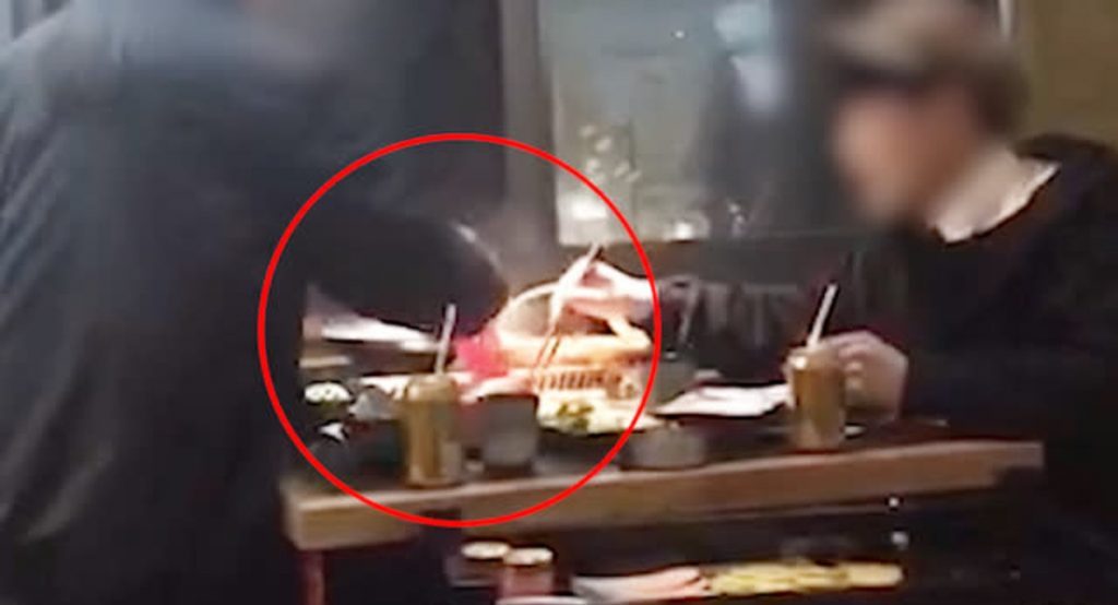 Khó chịu vì thói quen của bạn trai, cô gái liên tiếp nhắc nhở nhưng anh chàng vẫn thờ ơ tiếp tục sử dụng điện thoại. Bất ngờ, cô gái liền đứng dậy, giật lấy chiếc điện thoại của bạn trai rồi thả vào nồi lẩu đang ăn. Sau khi “trừng trị” gã bạn trai, cô gái quay gót rời khỏi nhà hàng, bỏ mặc chàng trai đang cố gắng lấy chiếc điện thoại ra khỏi nồi lẩu.