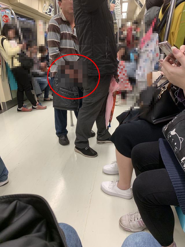 Khi đang đứng giữa nơi đông người, ông ta lại đưa tay xuống phần thân dưới và “tự sướng”. Mặc dù đưa áo khoác xuống để che đậy nhưng hành động của người đàn ông vẫn không thể thoát khỏi ánh nhìn kỳ thị của những người trên tàu.