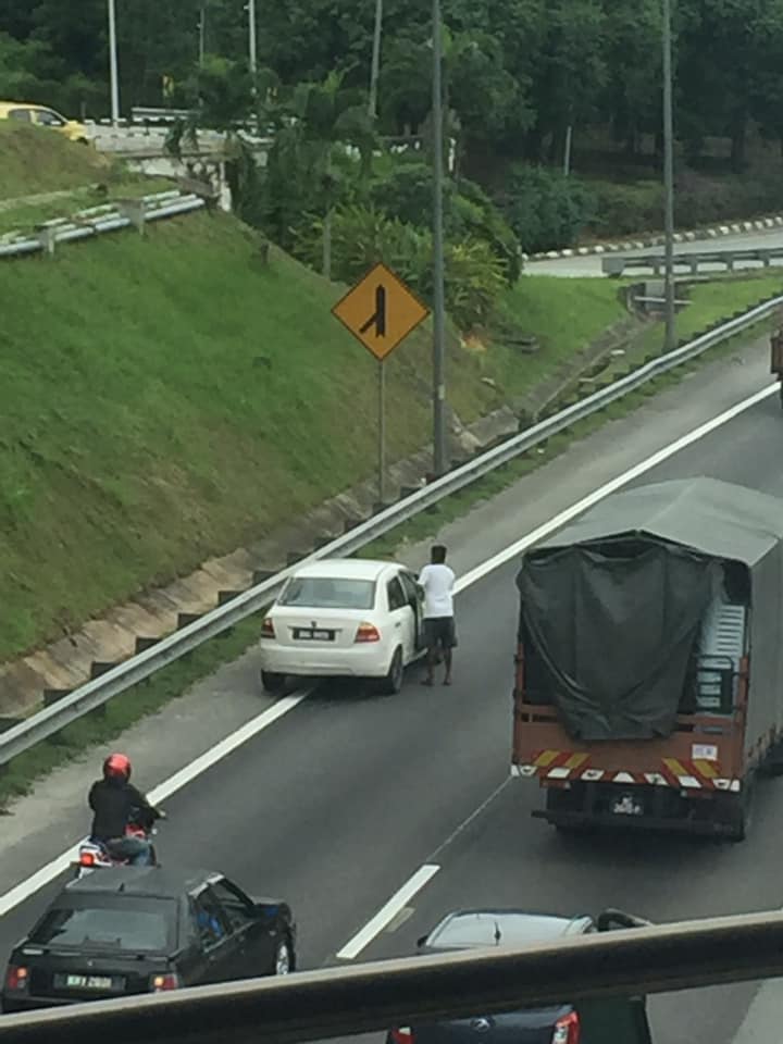 Đúng lúc ấy, một chiếc xe Proton Saga màu trắng xuất hiện. Nhận ra đây là vật cản nguy hiểm có thể gây nên tai nạn, người đàn ông trung niên vội vàng điều khiển xe tấp vào vệ đường. Sau đó, ông liều mình băng qua 3 làn đường, lao về phía chiếc vỉ nướng giữa dòng xe phóng nhanh vun vút, vừa chạy vừa giơ tay ra hiệu xin xe giảm tốc độ. Cảnh tượng trên khiến nhiều người xem không khỏi “thót tim” vì quá đỗi nguy hiểm, người đàn ông này vậy mà dám băng qua con phố toàn xe chạy nhanh như tên bắn thế này! Chỉ một sơ suất nhỏ thôi, tính mạng của ông cũng gặp nguy hiểm.