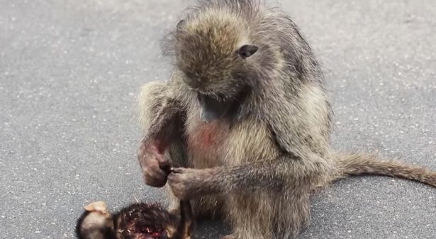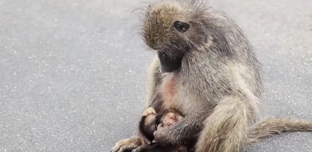 Vụ việc đau lòng xảy ra ở Vườn quốc gia Kruger, Nam Phi. Một con khỉ đầu chó lặng lẽ đứng ven đường, ngẩn người nhìn chằm chằm vào cái xác bê bết máu vì bị xe tông của khỉ con. Dường như chưa dám tin khỉ con đã chết, khỉ mẹ lặng lẽ đến gần vuốt đuôi con thơ, sau đó ân cần bắt rận trên đó như thuở con vẫn hoạt bát quấn quýt bên mình.