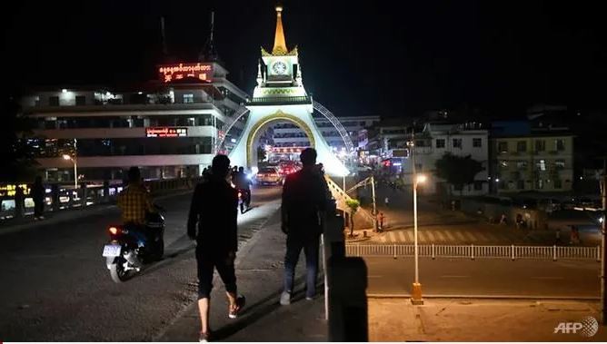 Sinh hoạt về đêm ở thị trấn Mongla, Myanmar - Ảnh: AFP