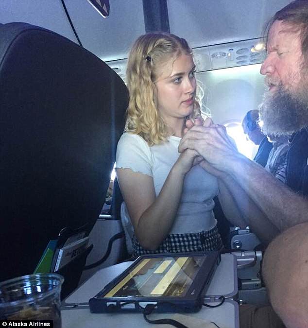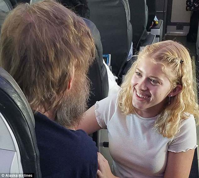 Cô gái dùng ngôn ngữ đặc biệt để giao tiếp với người đàn ông trên máy bay. Ảnh: Alaska Airline