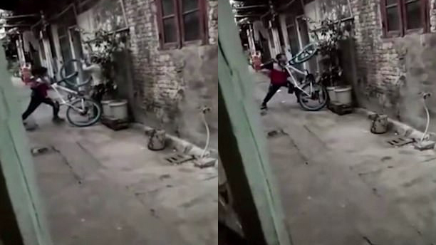 Sự việc này được cho là xảy ra tại Triệu Khánh, tỉnh Quảng Đông, Trung Quốc hôm 25/11. Trong một ngõ hẻm, cậu thiếu niên 14 tuổi, vẫn còn đang mặc chiếc áo đồng phục trường, đã dùng xe đạp để tấn công mẹ, sau đó liên tiếp đá vào người phụ nữ đang bị đẩy vào góc tường. Bà mẹ không hề phản ứng lại, mà chỉ biết lặng lẽ khóc.