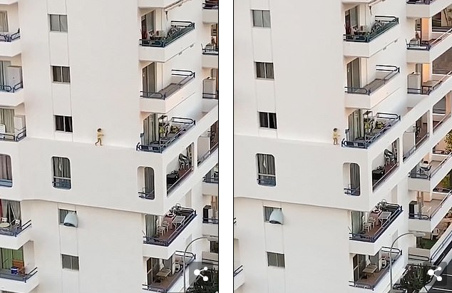 Từ cửa sổ của một căn hộ, cô bé nhanh chóng trèo ra, đặt chân lên gờ tường hẹp của tòa chung cư ở Playa Paraiso, Tenerife (Tây Ban Nha). Vừa đứng vững chân, bé gái đã lao băng băng về phía đầu kia của căn hộ, chỉ dùng tay trái bám hờ vào bức tường nhẵn thín để giữ thăng bằng.