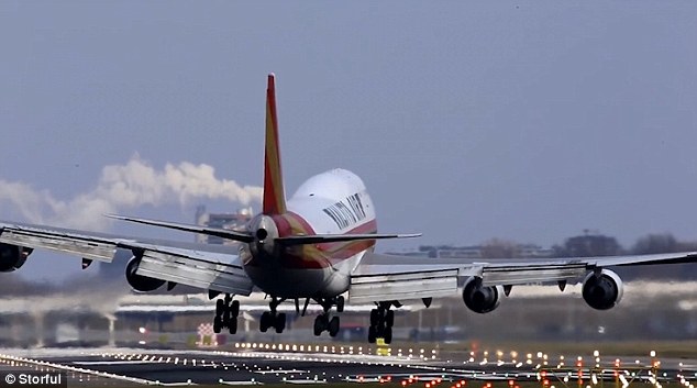 Video ghi lại cảnh chiếc Boeing B747 chật vật hạ cánh xuống đường băng 36R ‘Aalsmeerbaan’ tại sân bay quốc tế Schipol, Amsterdam (Hà Lan).