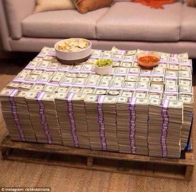 Hội con nhà giàu có không ít cách để khoe cuộc sống xa hoa, nhưng xếp tiền thành bàn như thế này chắc là một trong những cách sáng tạo nhất.