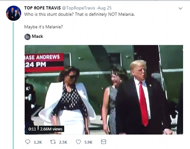Gần đây, trong chuyến thăm cùng Tổng thống Donald Trump đến Columbus, bang Ohio, vào ngày 24/8, Đệ nhất phu nhân Mỹ Melania Trump đang trở thành tâm điểm chú ý khi nhiều người dùng Twitter cho rằng bà đã sử dụng người đóng thế mình.