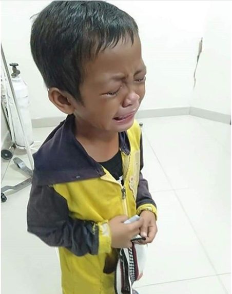 Những giọt nước mắt của cậu bé khiến những người chứng kiến đau thắt lòng.