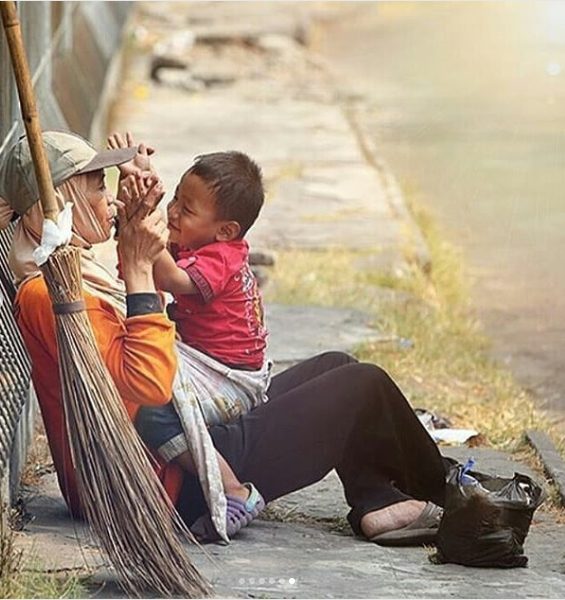 Theo thông tin từ tài khoản Makassar Info trên Instagram, Lina là một công nhân vệ sinh cần mẫn tại ga tàu điện ngầm Tanjung Bunga, Malaysia. Hàng ngày, cô đều phải làm việc xuyên suốt tại ga, không có nhiều thời gian để về nhà với hai đứa con nhỏ dại. Thế nên, dù còn nhỏ tuổi nhưng cậu bé đã quen với việc theo mẹ ra ga tàu, tự chơi loanh quanh một mình bên vỉa hè gần đó để chờ bà kết thúc ca làm.